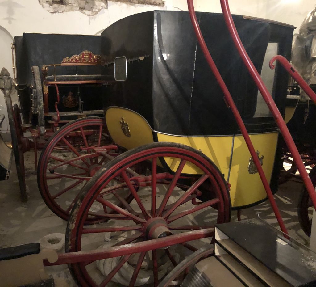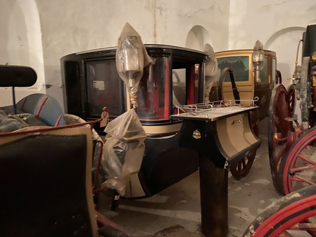 Πίσω από τον όγκο των κιβωτίων που έφταναν ως την οροφή, αποκαλύφθηκαν και βασιλικές άμαξες. Ο συνολικός αριθμός τώρα ανέρχεται σε οκτώ άμαξες και τέσσερα παϊτόνια – είδος ελαφριάς άμαξας. Ολες οι άμαξες βρίσκονται σε καλή κατάσταση.