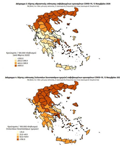 Ο χάρτης αποτυπώνει τη γεωγραφική κατανομή των συνολικών κρουσμάτων COVID-19 (από την αρχή της επιδημίας) ανά Περιφερειακή Ενότητα της χώρας, με βάση την δηλωθείσα διεύθυνση μόνιμης κατοικίας του ασθενούς, ή τη διεύθυνση προσωρινής διαμονής για τους τουρίστες και άλλους προσωρινά διαμένοντες στην Ελλάδα. Συμπεριλαμβάνονται τόσο κρούσματα με ιστορικό ταξιδίου (“εισαγόμενα”) όσο και κρούσματα με πιθανή εγχώρια μετάδοση.