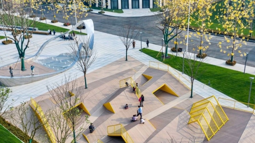 Tο Atelier Scale δημιούργησε το «The Folds», μια μικρή παιδική χαρά στην Changzhou της Κίνας, ένα μέρος στο οποίο τα παιδιά μπορούν να εξερευνήσουν και να παίξουν με έναν περισσότερο απτό και λιγότερο ρυθμισμένο τρόπο από ό, τι συνήθως.
