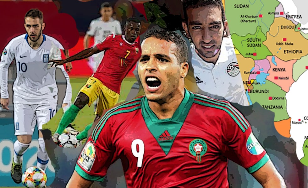 Ας τα πάρουμε όμως από την αρχή. Οι ερυθρόλευκοι διεθνείς είναι οι Κρίστινσον (Ισλανδία), Ντρέγκερ (Τυνησία), Σεμέδο (Πορτογαλία), Ραντζέλοβιτς (Σερβία), Χασάν (Αίγυπτος), Ελ Αραμπί (Μαρόκο), Σισέ (Σενεγάλη) και Καμαρά (Γουινέα), αλλά και οι «δικοί» μας Βρουσάι, Τζολάκης, Φορτούνης, Μπουχαλάκης, Μασούρας (Ελλάδα, Κ19, Κ21 και Ανδρών).