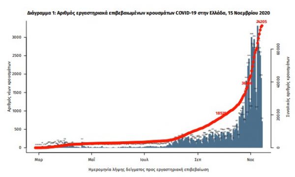 Συγκεκριμένα, σήμερα ο ΕΟΔΥ ανακοίνωσε 1.698 νέα κρούσματα του νέου ιού στη χώρα, εκ των οποίων 25 εντοπίστηκαν κατόπιν ελέγχων στις πύλες εισόδου της χώρας.