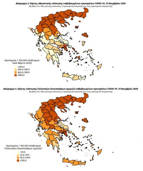 Ο χάρτης αποτυπώνει τη γεωγραφική κατανομή των συνολικών κρουσμάτων COVID-19 (από την αρχή της επιδημίας) ανά Περιφερειακή Ενότητα της χώρας, με βάση την δηλωθείσα διεύθυνση μόνιμης κατοικίας του ασθενούς, ή τη διεύθυνση προσωρινής διαμονής για τους τουρίστες και άλλους προσωρινά διαμένοντες στην Ελλάδα. Συμπεριλαμβάνονται τόσο κρούσματα με ιστορικό ταξιδίου (“εισαγόμενα”) όσο και κρούσματα με πιθανή εγχώρια μετάδοση.
