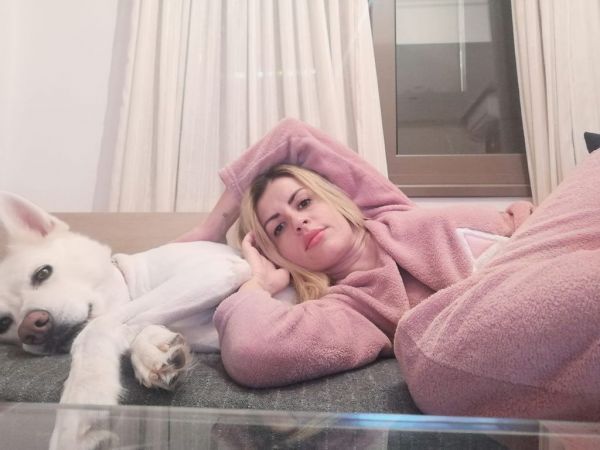 Η Χριστίνα έχει αδυναμία στα μεγαλόσωμα σκυλιά. Μετά από μια κουραστική μέρα, μια χνουδωτή αγκαλιά είναι το αγχολυτικό της.