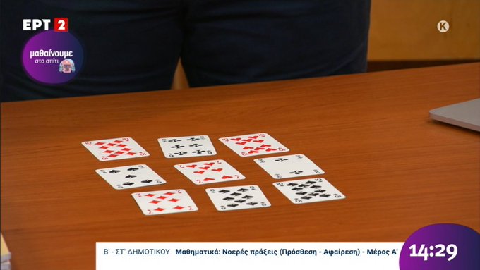 Ιδιαίτερη εντύπωση προκάλεσε το μάθημα των μαθηματικών, καθώς ο δάσκαλος χρησιμοποίησε μια τράπουλα για να δείξει στα παιδιά απλές πράξεις πρόσθεσης και αφαίρεσης.