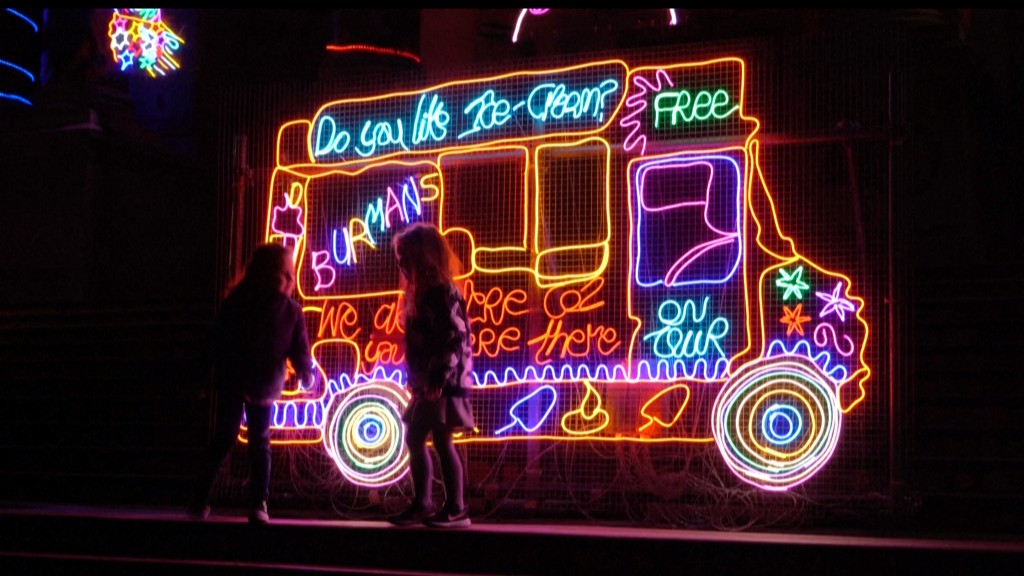 Η εντυπωσιακή εγκατάσταση, νότα αισιοδοξίας για το Λονδίνο που βρίσκεται και εκείνο σε δεύτερο lockdown, είναι μια γιορτή φωτός και χρωμάτων, ένα τεράστιο «κολάζ» με στοιχεία από την μυθολογία, την ποπ κουλτούρα, τον φεμινισμό, το Bollywood και την παιδική ηλικία της καλλιτέχνιδας.