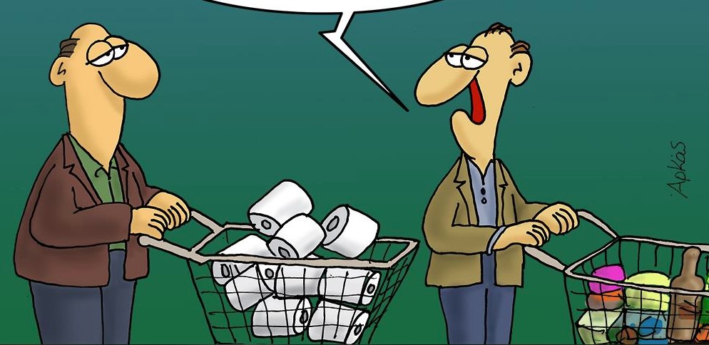 Ο γνωστός σκιτσογράφος έφτιαξε ένα σκίτσο για να σατιρίσει όσους έτρεξαν στα σούπερ μάρκετ και «σήκωσαν» όλα τα χαρτιά τουαλέτας.