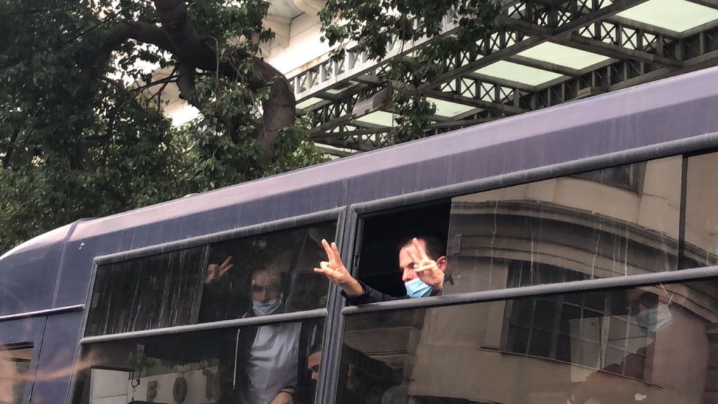 Συνθήματα για ξεσηκωμό απέναντι στην καταστολή φώναζαν χειροκροτούμενοι πολλοί προσαχθέντες μέσα από τα παράθυρα της κλούβας που τους οδηγούσε στην Ασφάλεια.