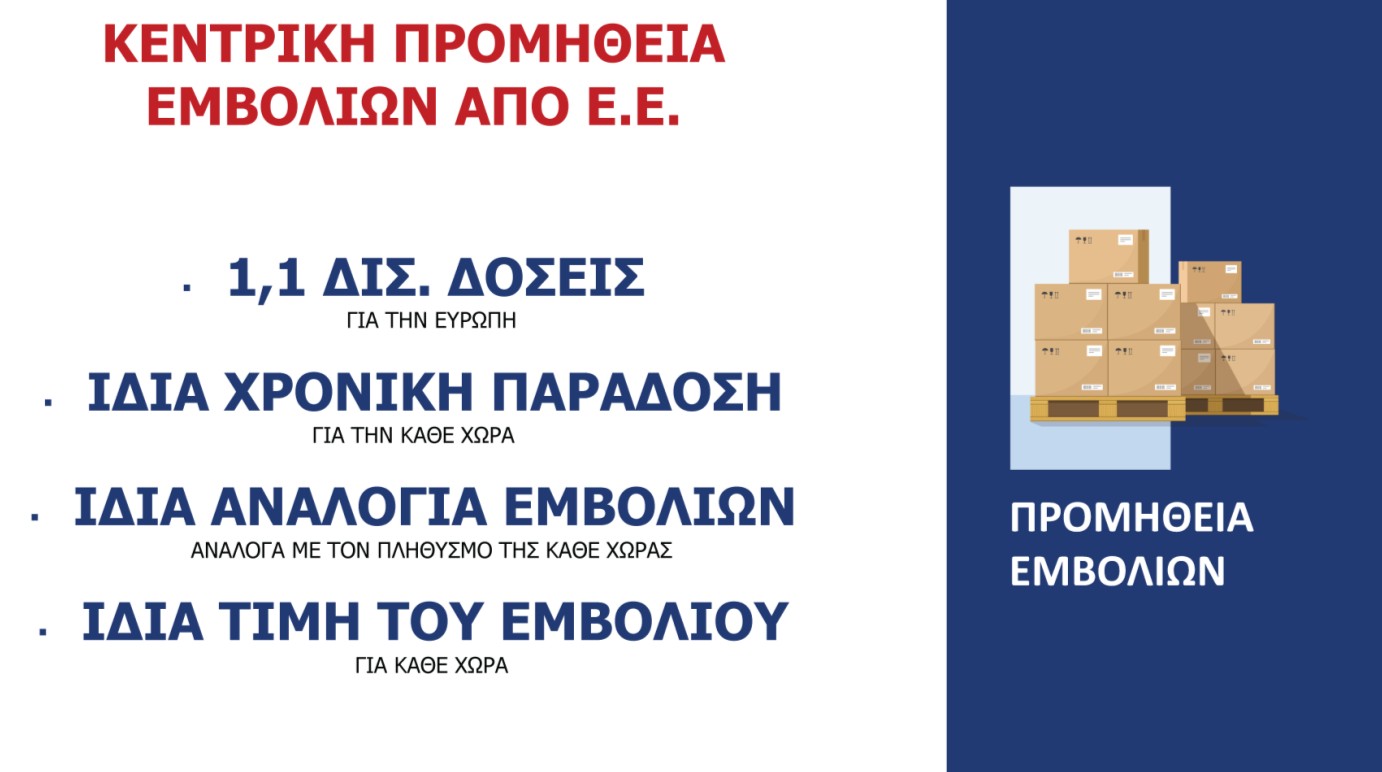 Θα υπάρξει κεντρική προμήθεια των εμβολίων από την Ευρωπαϊκή Ένωση και έτσι θα φτάσουν στην Ελλάδα.