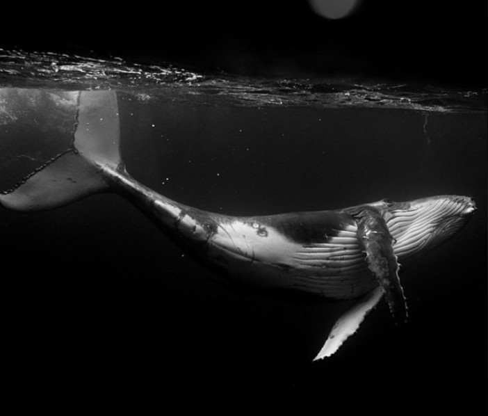 Με τον φακό του αιχμαλώτισε ένα κοπάδι μεγαλοπτεροφαλαινών (hupmback whale), καθώς αυτοί οι «ευγενικοί γίγαντες» έκαναν μανούβρες γύρω του.