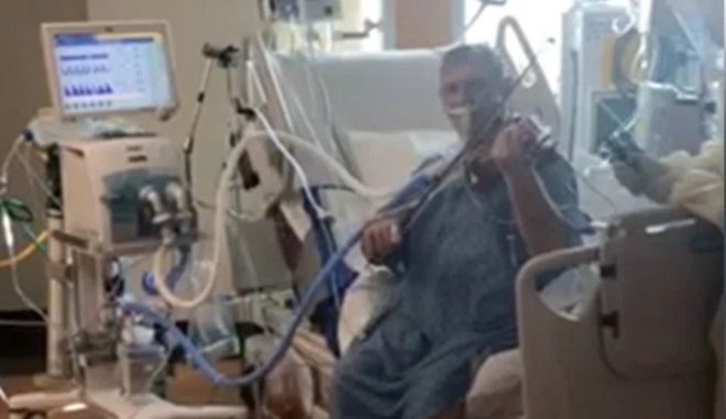 Ο μουσικός έδωσε λοιπόν προς τιμήν γιατρών και νοσοκόμων ένα «μίνι» βιολιστικό κονσέρτο από την νοσοκομειακή του κλίνη.