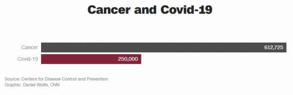 Πόσο πιο θανατηφόρος όμως είναι ο Covid-19 σε σχέση με τις άλλες βασικές αιτίες θανάτου στις ΗΠΑ; Το CNN πήρε τον μέσο όρο θανάτων των αιτιών αυτών μέσα σε μια πενταετία (μέχρι το 2018).