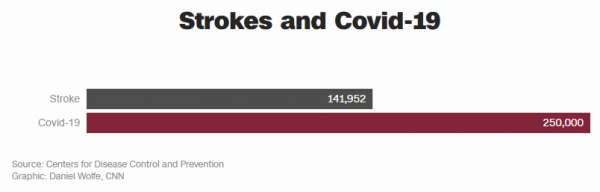 Αυτό σημαίνει μέσα σε 10 μήνες ο νέος κοροναϊός έχει σκοτώσει περίπου 1.8 φορές περισσότερους ανθρώπους σε σχέση με τους νεκρούς από εγκεφαλικό επεισόδιο μέσα σε 12 μήνες.