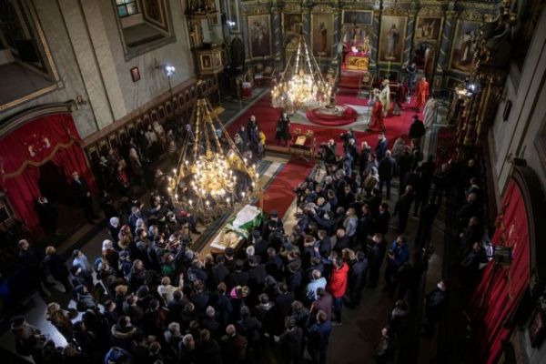 To πρωί τελέστηκε λειτουργία στον καθεδρικό ναό των Αρχαγγέλων με τν συμμετοχή πολλών ιεραρχών της Σερβικής Ορθόδοξης Εκκλησίας και την παρουσία εκατοντάδων πιστών, εντός και εκτός του ναού, λίγοι εκ των οποίων φορούσαν μάσκα.
