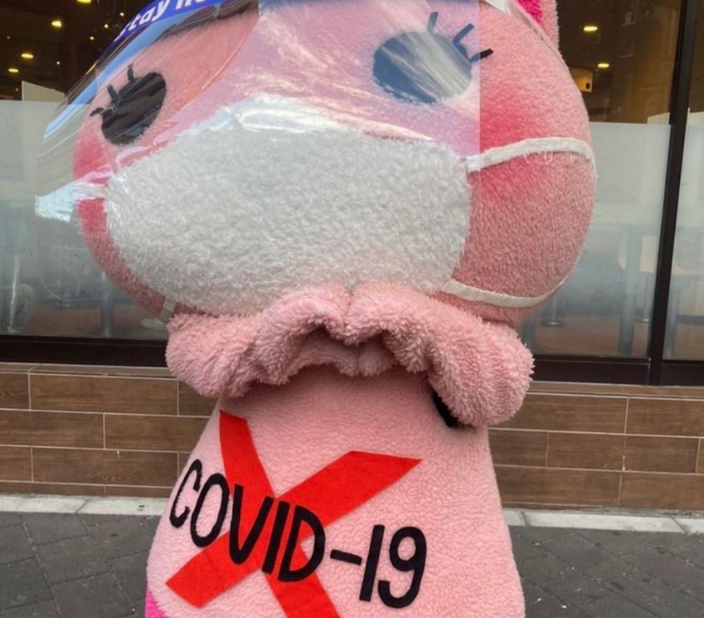 Έτσι πρωταγωνιστεί στους δρόμους του Τόκιο και η Koronon, που είναι η μασκότ που συμβολίζει το κίνημα ενάντια του κοροναϊού.