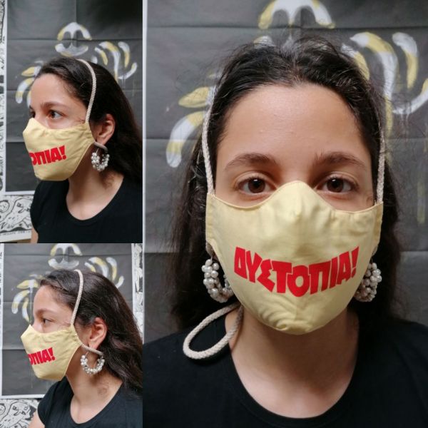 Χρησιμοποιώντας χιουμοριστικά μηνύματα και eco friendly, ανακυκλώσιμα υλικά, η αθηναϊκή ομάδα που ασχολείται με την τέχνη της μεταξοτυπίας φτιάχνει προστατευτικές μάσκες που διαλύουν έστω και για λίγο την αίσθηση δυστοπίας εκεί έξω.