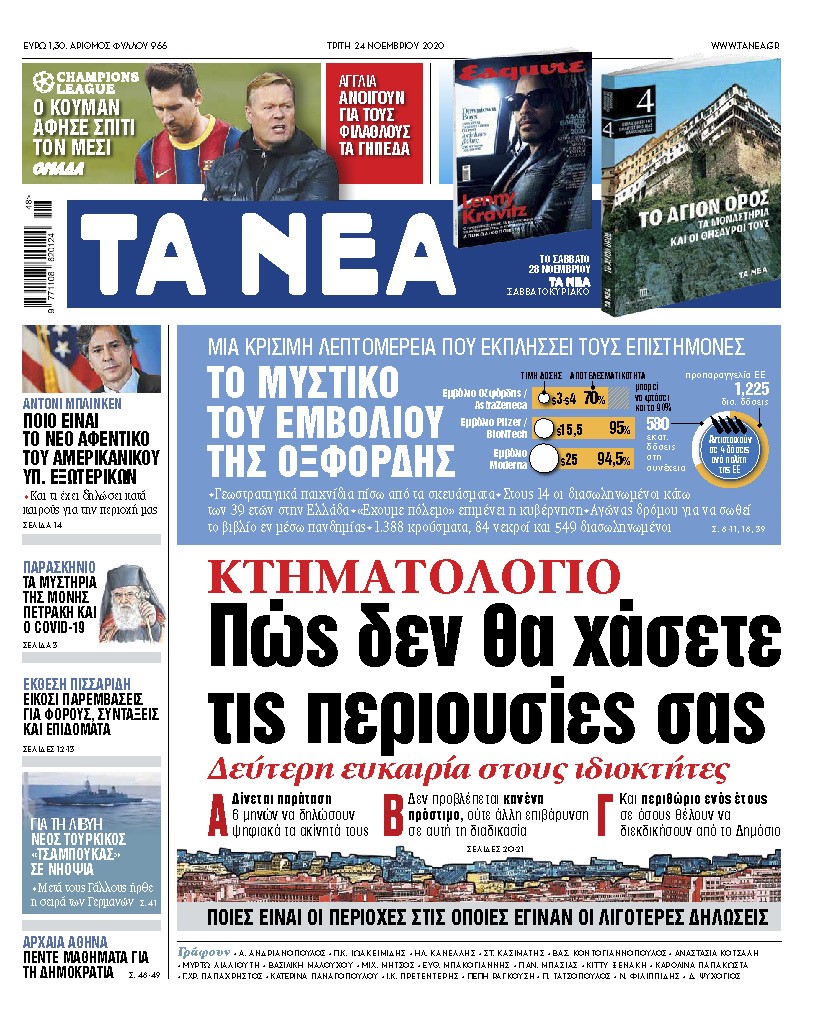 • Γεωστρατηγικά παιχνίδια πίσω από τα σκευάσματα • Στους 14 οι διασωληνωμένοι κάτω των 39 ετών στην Ελλάδα • «Εχουμε πόλεμο» επιμένει η κυβέρνηση • Αγώνας δρόμου για να σωθεί το βιβλίο εν μέσω πανδημίας