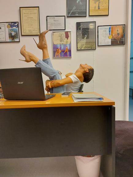 Στην σχολή χορού της με σέξι ψηλοτάκουνα στιλέτα σε «σκονισμένο ροζ».