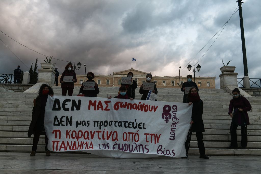 Προσαγωγές στη συγκέντρωση λίγων ατόμων, με όλα τα μέτρα, για τη βία κατα των γυναικών