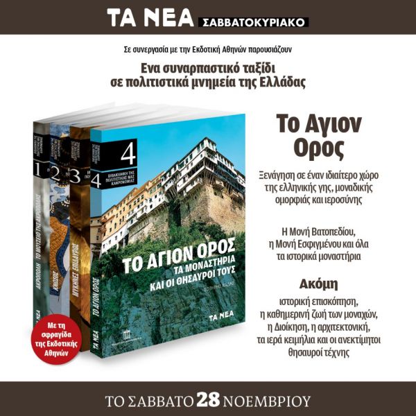 ΤΑ ΝΕΑ Σαββατοκύριακο σε συνεργασία με την Εκδοτική Αθηνών, παρουσιάζουν ένα συναρπαστικό ταξίδι σε πολιτιστικά μνημεία της Eλλάδας!