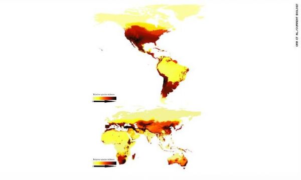 Αυτός ο χάρτης δείχνει έναν σχετικό αριθμό διαφορετικών ειδών μελισσών σε όλο τον κόσμο