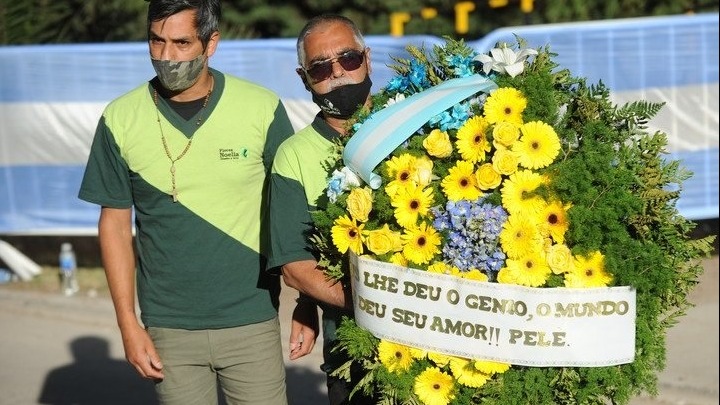 Ήταν το στεφάνι που είχε στείλει ο μεγάλος Πελέ, για να τιμήσει τον Αργεντινό άσο, μαζί με ένα συγκλονιστικό μήνυμα. Στολισμένο με μπλε και κίτρινα λουλούδια που σχημάτιζαν ένα είδος βραζιλιάνικης σημαίας, στο στεφάνι του μεγάλου Βραζιλιάνου άσου, υπήρχε και μία κορδέλα που έγραφε: «Ο Θεός σε έκανε ιδιοφυΐα, ο κόσμος σου έδωσε την αγάπη του. Πελέ».