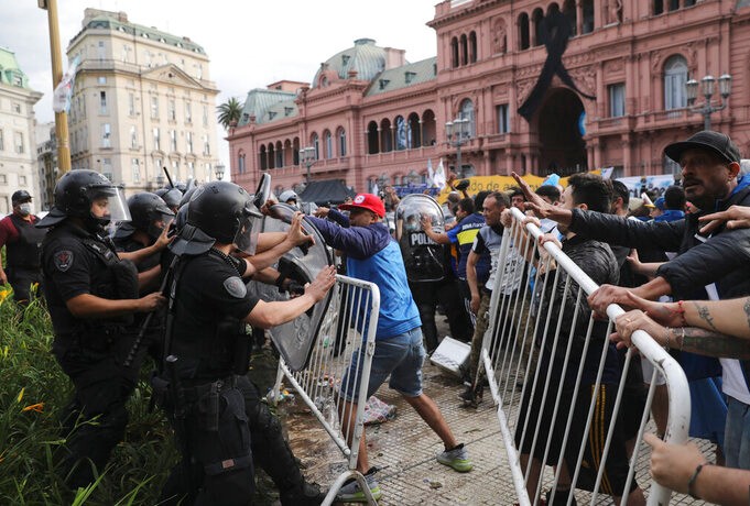 Πολύ σοβαρά επεισόδια ξέσπασαν στο Μπουένος Αιρες, έξω από την Casa Rosada, όπου χιλιάδες κόσμου έχει συγκεντρωθεί για να «αποχαιρετίσει» τον Ντιέγκο Μαραντόνα.