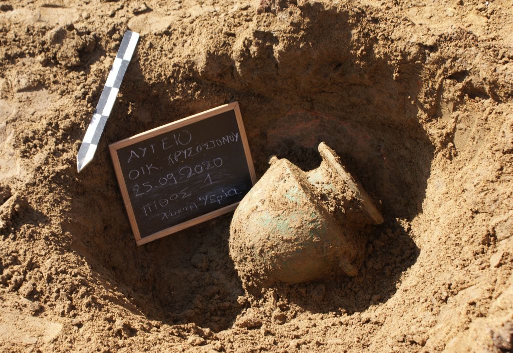 Ιδιαίτερα σημαντικά είναι τα ευρήματα του ταφικού πίθου 1 μεταξύ των οποίων μία χάλκινη τεφροδόχος υδρία με τη βάση της, η οποία φέρει ανθεμωτή διακόσμηση στις λαβές και λεοντοκεφαλές στο σημείο ένωσης των λαβών με το χείλος και ένα χάλκινο πτυκτό κάτοπτρο. Από την πρώτη εκτίμηση των κτερισμάτων του, ο ταφικός πίθος χρονολογείται στα τέλη του 4ου με αρχές του 3ου αι. π.Χ. Πέρα από το μεγάλο αριθμό των αγγείων της ελληνιστικής εποχής κυρίως, από τα ευρήματα των υπόλοιπων τάφων ξεχωρίζει μαρμάρινη επιτύμβια στήλη με αετωματική επίστεψη.