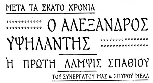 »Η Ευρώπη μπορεί να ήταν ήσυχη. Ο Υψηλάντης φεύγοντας σε λίγες μέρες απ’ την Πετρούπολι, πήγαινε να την ρίξη σε μιάν από της δυνατώτερες φουρτούνες πουχε περάση εκείνη την εποχή».