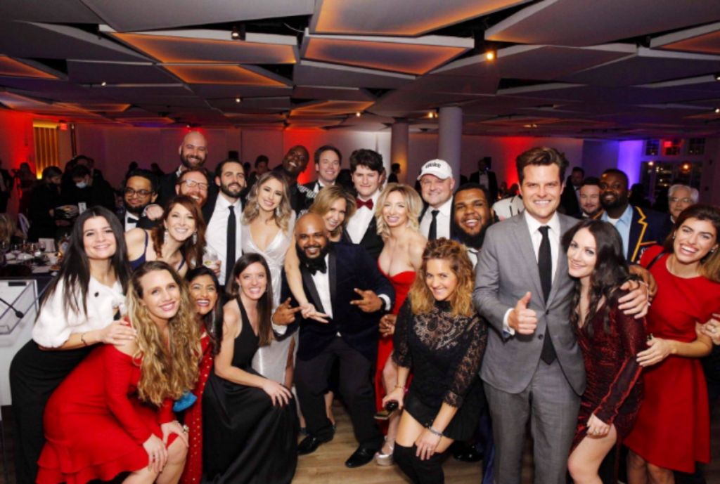 Δεν εμφανίστηκε η Sarah Palin, η οποία είχε συμφωνήσει να παραστεί στην εκδήλωση, αλλά ακυρώθηκε λόγω ανησυχιών σχετικά με την πτήση από την Αλάσκα κατά τη διάρκεια πανδημίας, σύμφωνα με κάποιον από το κοντινό της περιβάλλον. Δεν πραγματοποιήθηκε στο εργοστάσιο Caldwell στο Μανχάταν, όπως είχε αρχικά αναφερθεί στη σελίδα Facebook του συλλόγου. Εκπρόσωπος του χώρου είπε ότι ο χώρος είναι κλειστός για εκδηλώσεις εδώ για μήνες.