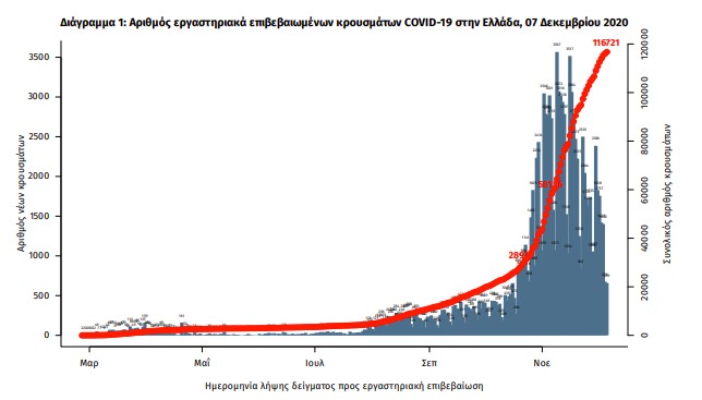 Έτσι, ο συνολικός αριθμός των κρουσμάτων είναι 116.721, εκ των οποίων το 52.7% άνδρες, 5.007 (4.3%) θεωρούνται σχετιζόμενα με ταξίδι από το εξωτερικό και 31.293 (26.8%) είναι σχετιζόμενα με ήδη γνωστό κρούσμα.