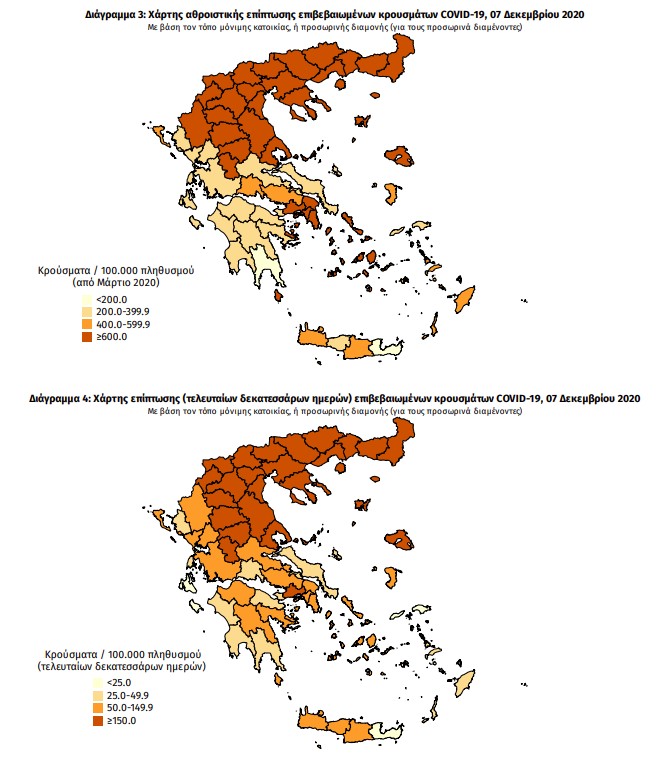 Ο χάρτης αποτυπώνει τη γεωγραφική κατανομή των συνολικών κρουσμάτων COVID-19 (από την αρχή της επιδημίας) ανά Περιφερειακή Ενότητα της χώρας, με βάση την δηλωθείσα διεύθυνση μόνιμης κατοικίας του ασθενούς, ή τη διεύθυνση προσωρινής διαμονής για τους τουρίστες και άλλους προσωρινά διαμένοντες στην Ελλάδα. Συμπεριλαμβάνονται τόσο κρούσματα με ιστορικό ταξιδίου (“εισαγόμενα”) όσο και κρούσματα με πιθανή εγχώρια μετάδοση.