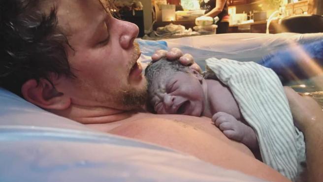 Μοιράστηκε τον τοκετό του μέσω του TikTok και σχολίασε ότι το μωρό του «ήρθε πολύ γρήγορα και γεννήθηκε στο σπίτι, μετά από 10 ώρες δουλειάς και 30 λεπτά τοκετού».
