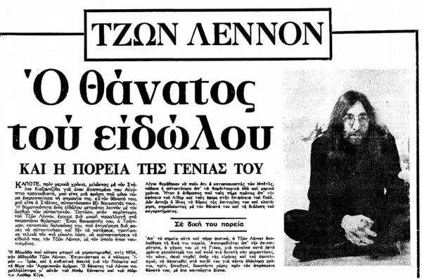 «Ο διανοούμενος των θρυλικών Μπήτλς, δολοφονήθηκε τη νύκτα της Δευτέρας, καθώς έμπαινε στην είσοδο της παλαιάς πολυκατοικίας – ονόματι Ντακότα – όπου έμενε στο Μανχάτταν. Η Νέα Υόρκη ήταν η δεύτερη πατρίδα του.