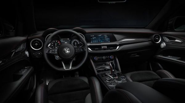 Έτσι, η Stelvio Veloce Ti η οποία αναμένεται να είναι διαθέσιμη προς παραγγελία από τις αρχές της νέας χρονιάς, διαθέτει ένα πιο επιθετικά σχεδιασμένο πίσω προφυλακτήρα, πιο σκούρα λογότυπα, φιμέ παράθυρα με μαύρο περίγραμμα ενώ επωφελείται από νέου σχεδιασμού πεντάκτινες μαύρες ζάντες 21 ιντσών.