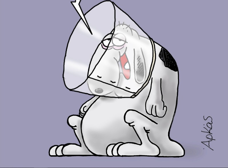 Στο σκίτσο πρωταγωνιστεί ένας από τους σκύλους-ήρωες του Αρκά ο οποίος φοράει μάσκα