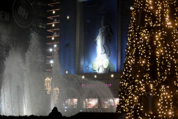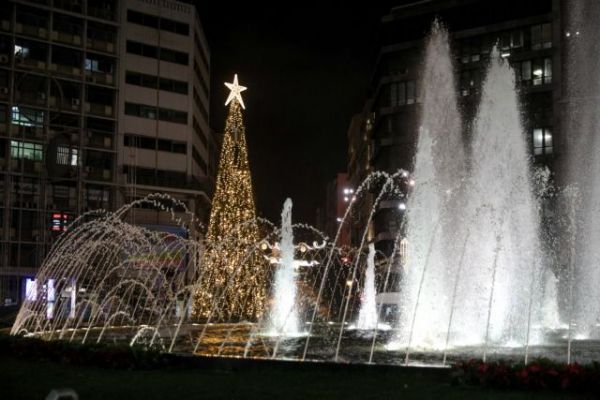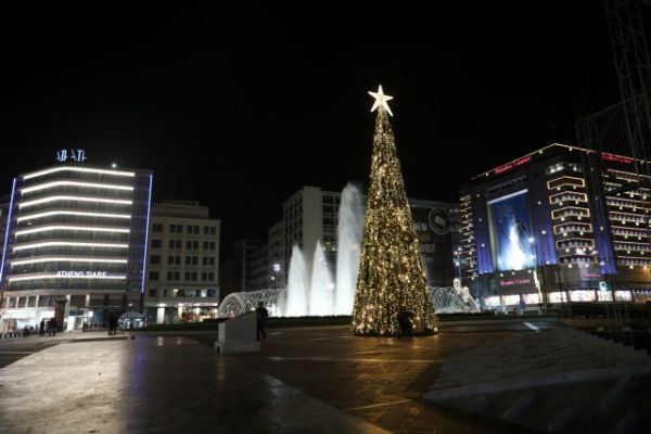 Φωταγωγήθηκε χτες το δέντρο που στήθηκε από τον Δήμο Αθηναίων στην πλατεία Ομονοίας ενόψει των Χριστουγέννων.