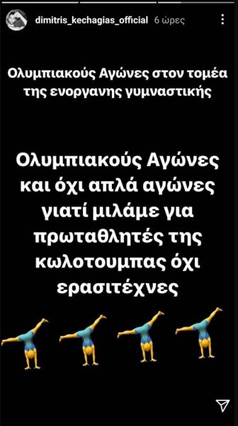 «Ολυμπιακοί Αγώνες στον τομέα της ενόργανης γυμναστικής. Ολυμπιακούς Αγώνες και όχι απλά αγώνες. Γιατί μιλάμε για πρωταθλητές της κ@λοτούμπας, όχι ερασιτέχνες» έγραψε στη νέα του ανάρτηση ο Δημήτρης Κεχαγιάς.
