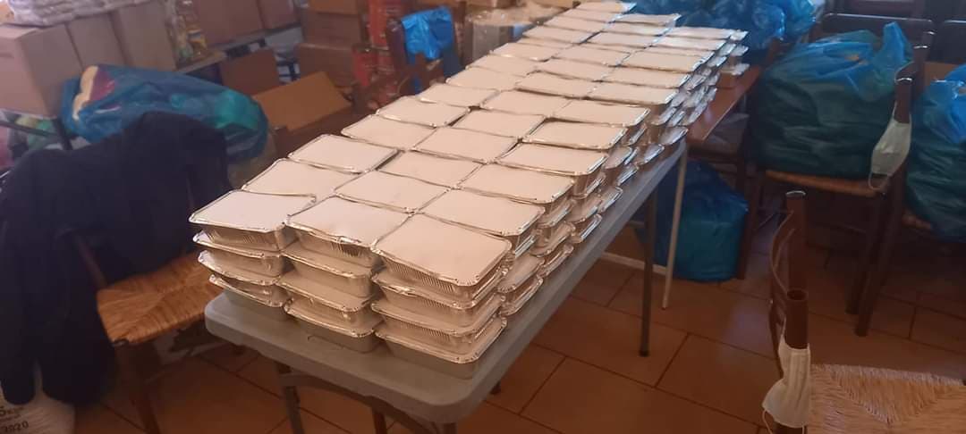 Ο Δημήτρης αγοράζει με δικά του έξοδα την πρώτη ύλη για να φτιάξει μαγειρευτό φαγητό για όσους το έχουν ανάγκη: μακαρόνια με κιμά, φακές, φασολάδα, κοτόπουλο με πατάτες, λαδερά… Σταδιακά, και ειδικά τώρα, στην δεύτερη και «σκληρή» καραντίνα του χειμώνα, άρχισε ο κόσμος να συνδράμει με σακούλες γεμάτες με προμήθειες (λάδι, αλεύρι, ζυμαρικά, πελτέδες).