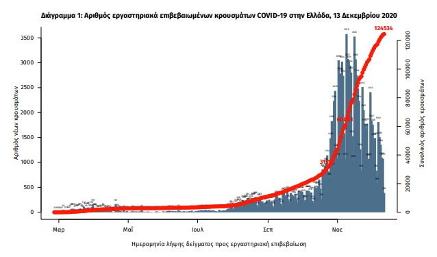 Έτσι, ο συνολικός αριθμός των κρουσμάτων είναι 125.173, εκ των οποίων το 52.6% άνδρες, ενώ 5.126 (4.1%) θεωρούνται σχετιζόμενα με ταξίδι από το εξωτερικό και 35.741 (28.6%) είναι σχετιζόμενα με ήδη γνωστό κρούσμα.