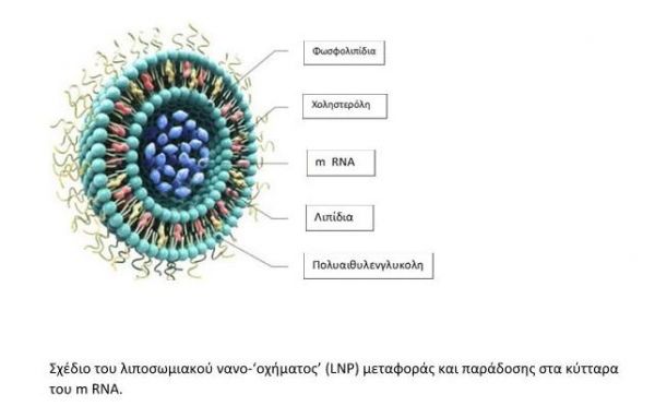 «Το νανοτεχνολογικό «όχημα» που χρησιμοποιείται στο εμβόλιο είναι υψηλής τεχνολογίας και προστατεύει το υπερευαίσθητο mRNA κατά την χορήγηση του στον οργανισμό αλλά και κατά μεταφορά και την αποθήκευση του πριν να χορηγηθεί στον άνθρωπο»