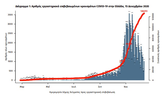 Έτσι, ο συνολικός αριθμός των κρουσμάτων είναι 126.372, εκ των οποίων το 52.5% άνδρες, ενώ 5.143 (4.1%) θεωρούνται σχετιζόμενα με ταξίδι από το εξωτερικό και 36.203 (28.6%) είναι σχετιζόμενα με ήδη γνωστό κρούσμα.