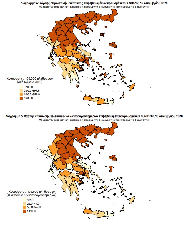 Ο χάρτης αποτυπώνει τη γεωγραφική κατανομή των συνολικών κρουσμάτων COVID-19 (από την αρχή της επιδημίας) ανά Περιφερειακή Ενότητα της χώρας, με βάση την δηλωθείσα διεύθυνση μόνιμης κατοικίας του ασθενούς, ή τη διεύθυνση προσωρινής διαμονής για τους τουρίστες και άλλους προσωρινά διαμένοντες στην Ελλάδα. Συμπεριλαμβάνονται τόσο κρούσματα με ιστορικό ταξιδίου (“εισαγόμενα”) όσο και κρούσματα με πιθανή εγχώρια μετάδοση