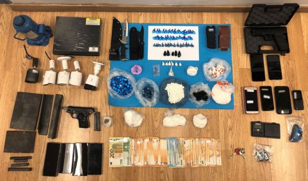 Χθες το πρωί πραγματοποιήθηκαν παράλληλες οργανωμένες αστυνομικές επιχειρήσεις, με τη συνδρομή της Ε.Κ.Α.Μ. και αστυνομικού σκύλου, σε (7) οικίες σε περιοχές της Αττικής, όπου συνελήφθησαν τα προαναφερόμενα μέλη, ενώ βρέθηκαν και κατασχέθηκαν: