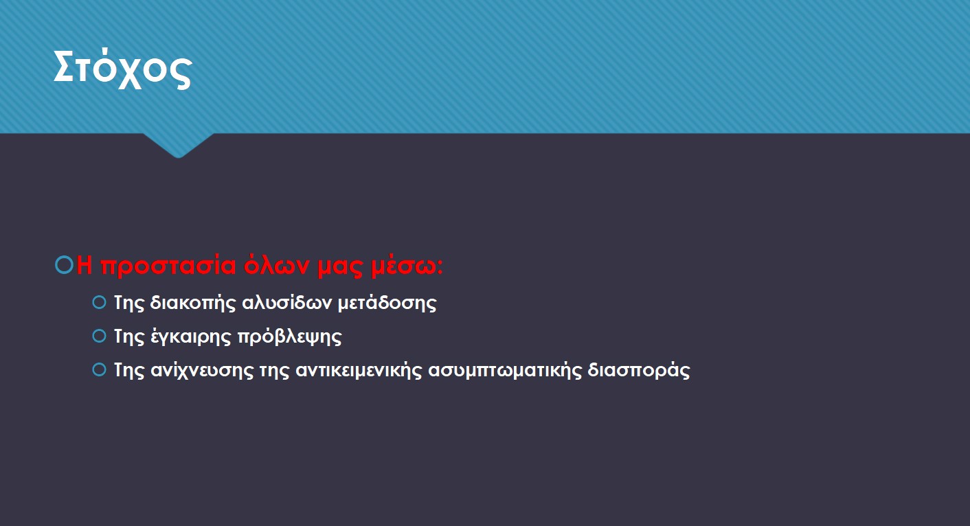 Της ανίχνευσης της αντικειμενικής ασυμπτωματικής διασποράς