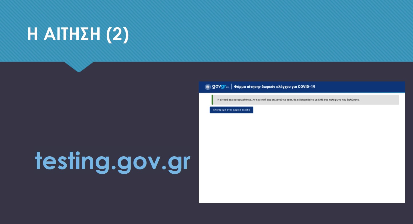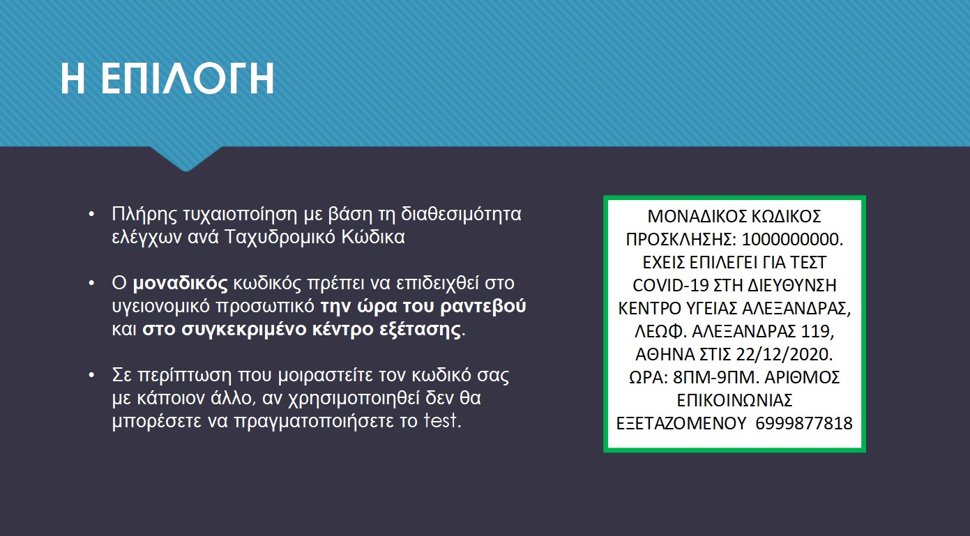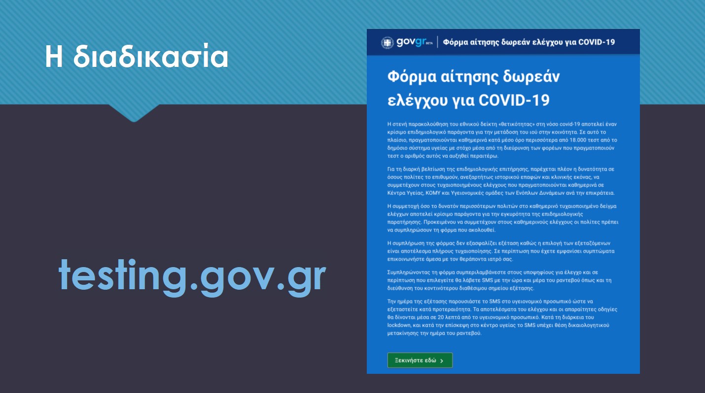 Για να λάβει κάποιος μέρος θα πρέπει να συμπληρώσει κάποια στοιχεία σε μια φόρμα που θα υπάρχει στην πλατφόρμα, testing.gov.gr.