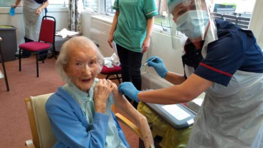 Μια 108χρονη γυναίκα από το Pembrokeshire της Ουαλίας συγκαταλέγεται μεταξύ των πρώτων τρόφιμων των γηροκομείων που έλαβαν το εμβόλιο κατά του κοροναϊού.