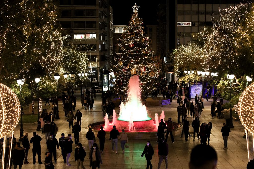Γεμάτη από κόσμο είναι η πλατεία Συντάγματος, με πολλούς πολίτες να φωτογραφίζονται κάτω από το χριστουγεννιάτικο δέντρο και άλλους να κάνουν τη βόλτα τους στα μαγαζιά της Ερμού.