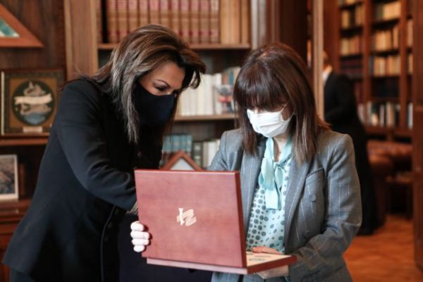 Η κυρία Αγγελοπούλου παρουσίασε επίσης στην Πρόεδρο της Δημοκρατίας την επετειακή νομισματική συλλογή, που αντλεί έμπνευση από σημαντικούς σταθμούς της ελληνικής ιστορίας.