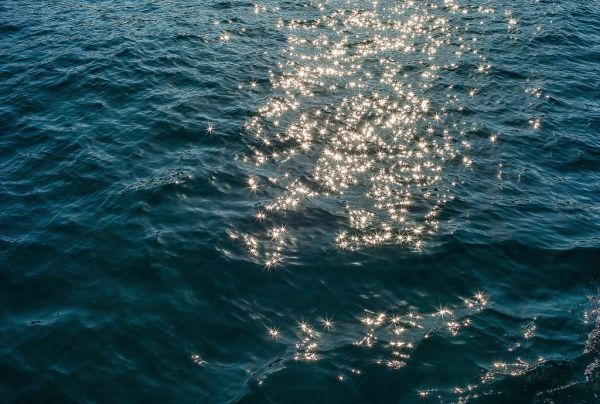 Ο ήλιος καθρεφτίζεται στη θάλασσα στις Κυκλάδες. Καλοκαίρι 2020.