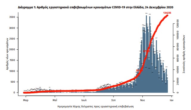 Τέλος, έχουμε 55 ακόμα καταγεγραμμένους θανάτους και 4457 θανάτους συνολικά στη χώρα. 1798 (40.3%) γυναίκες και οι υπόλοιποι άνδρες. Η διάμεση ηλικία των θανόντων συμπολιτών μας ήταν τα 79 έτη και το 95.5% είχε κάποιο υποκείμενο νόσημα ή/και ηλικία 70 ετών και άνω.